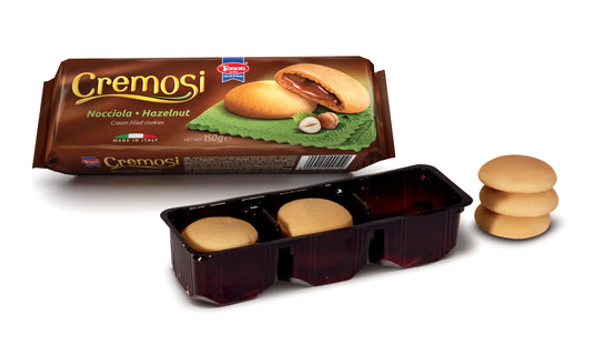 Las galletas Cremosi Nocciola pertenecen a la gama de galletas rellenas de crema Cremosi de la marca italiana Tonon.