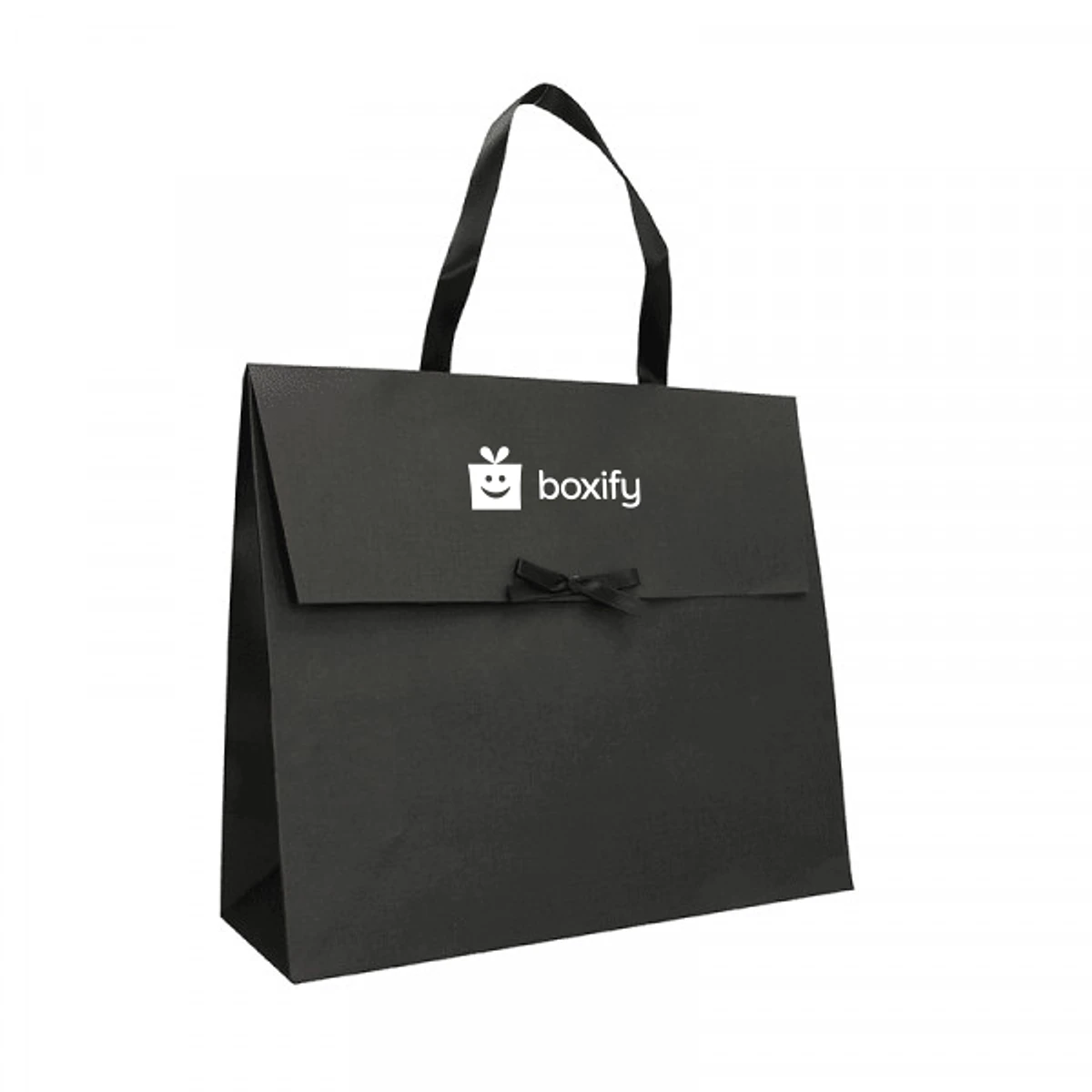 Bolsa práctica de papel premium con lazo, versatil y perfecta para detalles. Sofisticada y ecológica. Disponible en 3 colores.