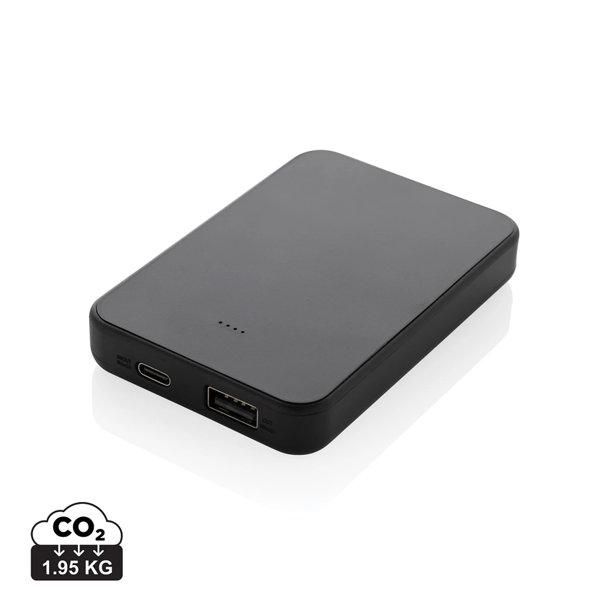 Powerbank de bolsillo 5.000 mAh con puerto de entrada/salida USB C y puerto USB A adicional. La carcasa está fabricada con plástico ABS reciclado con certificación RCS. RCS (Recycled Claim Standard) es un estándar para verificar el contenido reciclado de un producto a lo largo de toda la cadena de suministro. Contenido reciclado total: 25% en base al peso total del artículo. Cuando está completamente cargada, la batería externa te proporciona suficiente energía para recargar tu teléfono móvil hasta dos veces. Contiene una batería de polímero de litio de grado A de 5.000 mAh de larga duración. Los indicadores de energía indicarán el nivel de energía restante para que siempre sepas cuándo recargar. Entrada tipo C 5 V/2,4 A; USB A: salida 5 V/2,4 A, salida tipo C: 5 V/2 A Artículo y accesorios libres de PVC. Incluye cable de carga TPE reciclado con certificación RCS. Presentado en embalaje mixto FSC®.