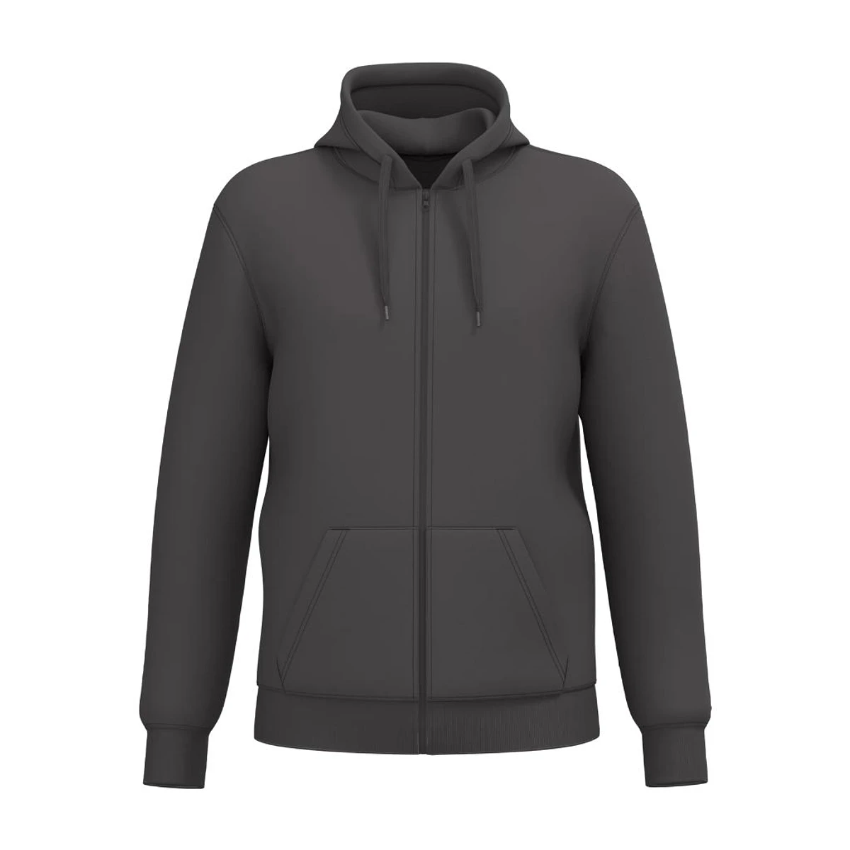 50% algodón ring spun / 50% poliéster reciclado post-consumo. Felpa perchada. Corte recto. Cortado y cosido. Canalé tubular 2x1 para un mejor acabado en cuello, puños y bajo de la prenda. Bolsillo tipo canguro. Cierre con cremallera de nailon. Capucha forrada con tejido de polialgodón y jersey, con cordón de ajuste plano. Tira cubrecosturas en tejido jersey a tono en el interior del cuello. Sin etiqueta de marca en el cuello, sólo una etiqueta con la talla para facilitar la personalización.