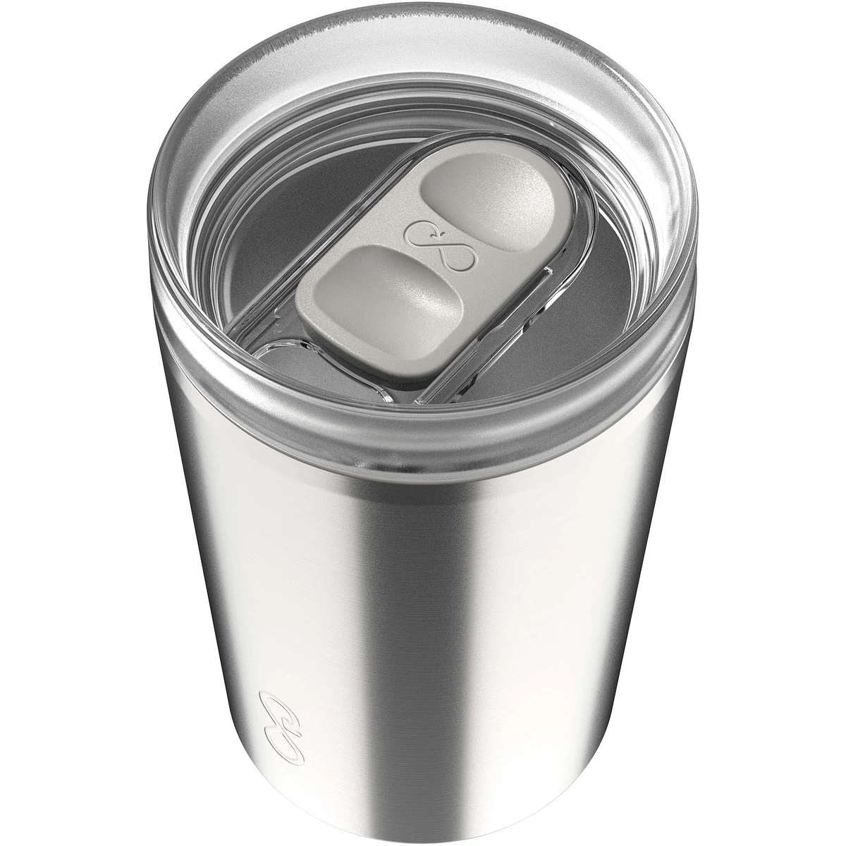 El vaso "Ocean Bottle" de 350 ml tiene aislamiento doble para mantener las bebidas calientes durante cuatro horas y frías durante diez. Cabe perfectamente en la mayoría de las cafeteras, así como en la mayoría de los portavasos de los automóviles. Cada taza de viaje es totalmente neutra en carbono y sirve para financiar la recogida de 1000 botellas de plástico para mejorar los medios de vida en las comunidades costeras. El vaso está fabricado con un 90 % de acero inoxidable reciclado y otros materiales reciclados. Se presenta en una caja de regalo de cartón reciclado de origen responsable.
